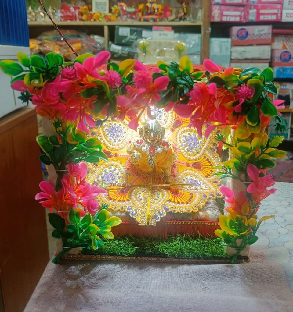 Decorative set is for festival purpose like janmashtami there’s lighting in it some plants dec0ration which gives divine and devotional vibes..